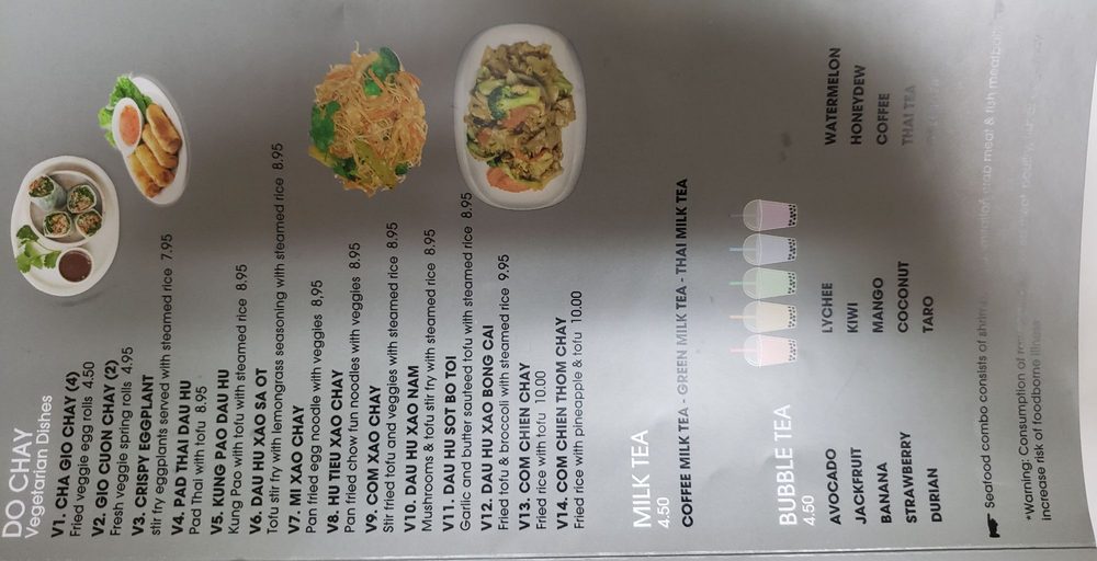 Introducing the menu at PHO 4 U Vietnamese Cuisine, located in Brookfield, WI, offers a wide range of Vietnamese dishes with options for vegans and vegetarians. The restaurant provides a casual yet trendy atmosphere with amenities like free Wi-Fi, TV, and outdoor seating. The menu features appetizers such as Cha Gio pork egg rolls, Bo Tai Chanh Vietnamese beef carpaccio, and Tom Sot Bo Toi sautéed shrimp. Additionally, their salads include Chicken salad and Vietnamese Papaya Salad. The highlight of the menu is their Pho selection, including Pho Dac Biet - a house combination pho, Pho Ga - chicken pho, and Pho Tom - shrimp pho. Each dish is meticulously prepared with fresh ingredients and bursting with authentic Vietnamese flavors. Experience the taste of Vietnam at PHO 4 U Vietnamese Cuisine.